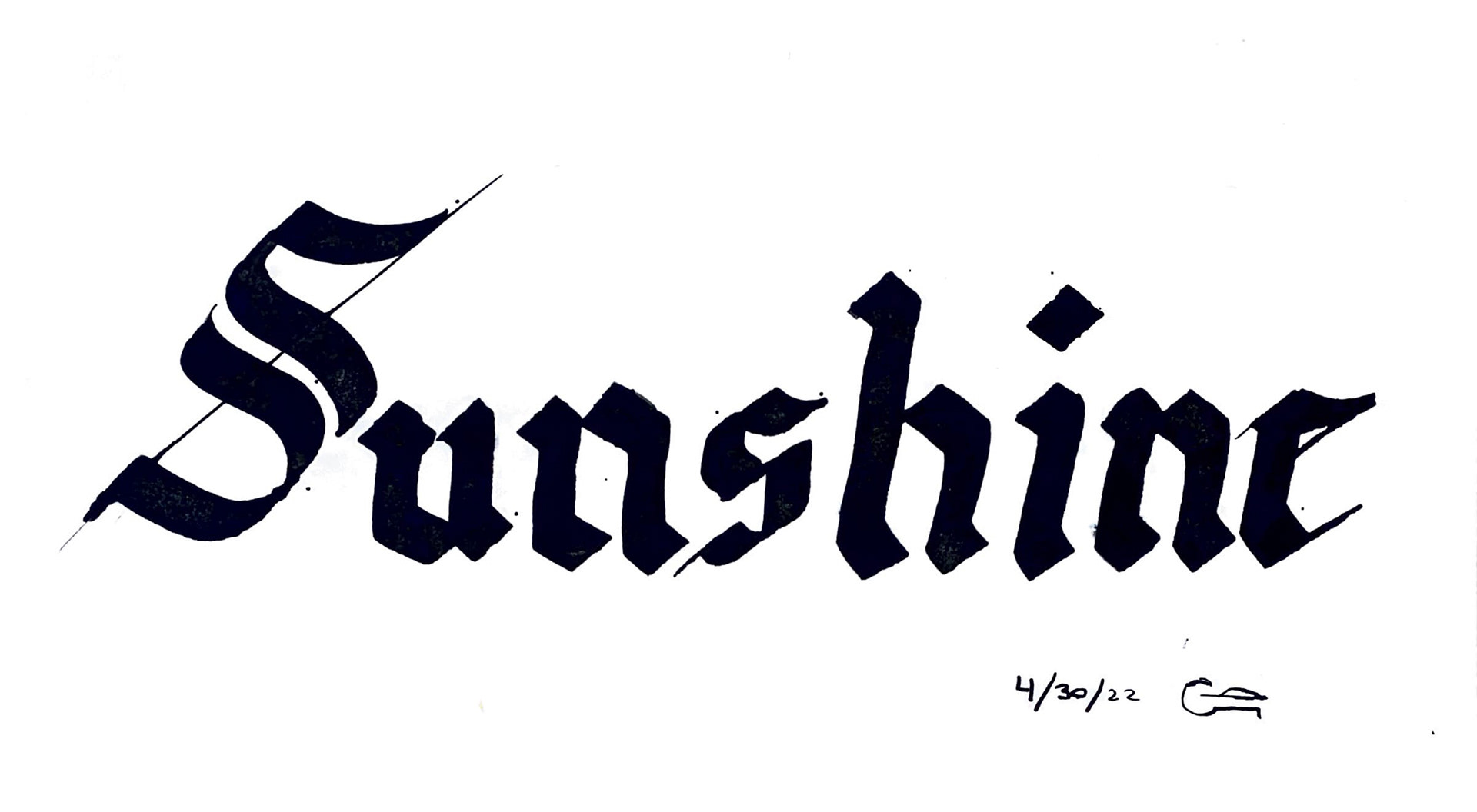 Sunshine Blackletter: 10mm flat nib, India ink - April 2022