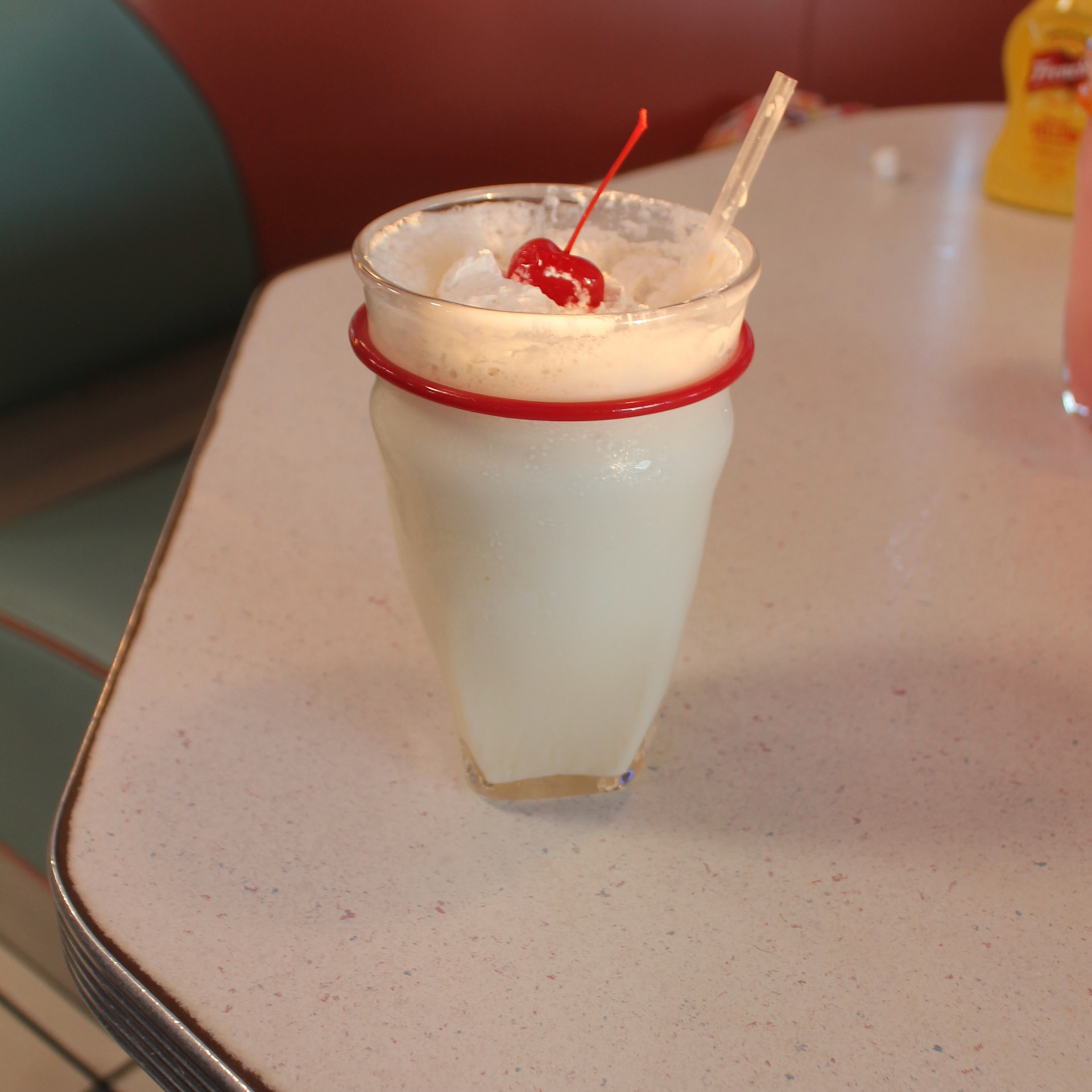 The form of the glass elegantly shifts from a circular rim to a square base, which matches a square indentation on the coaster. At its lip, Glacia has a band of colored glass to make it comfortable to hold, which also indicates a good place to start adding whipped cream.