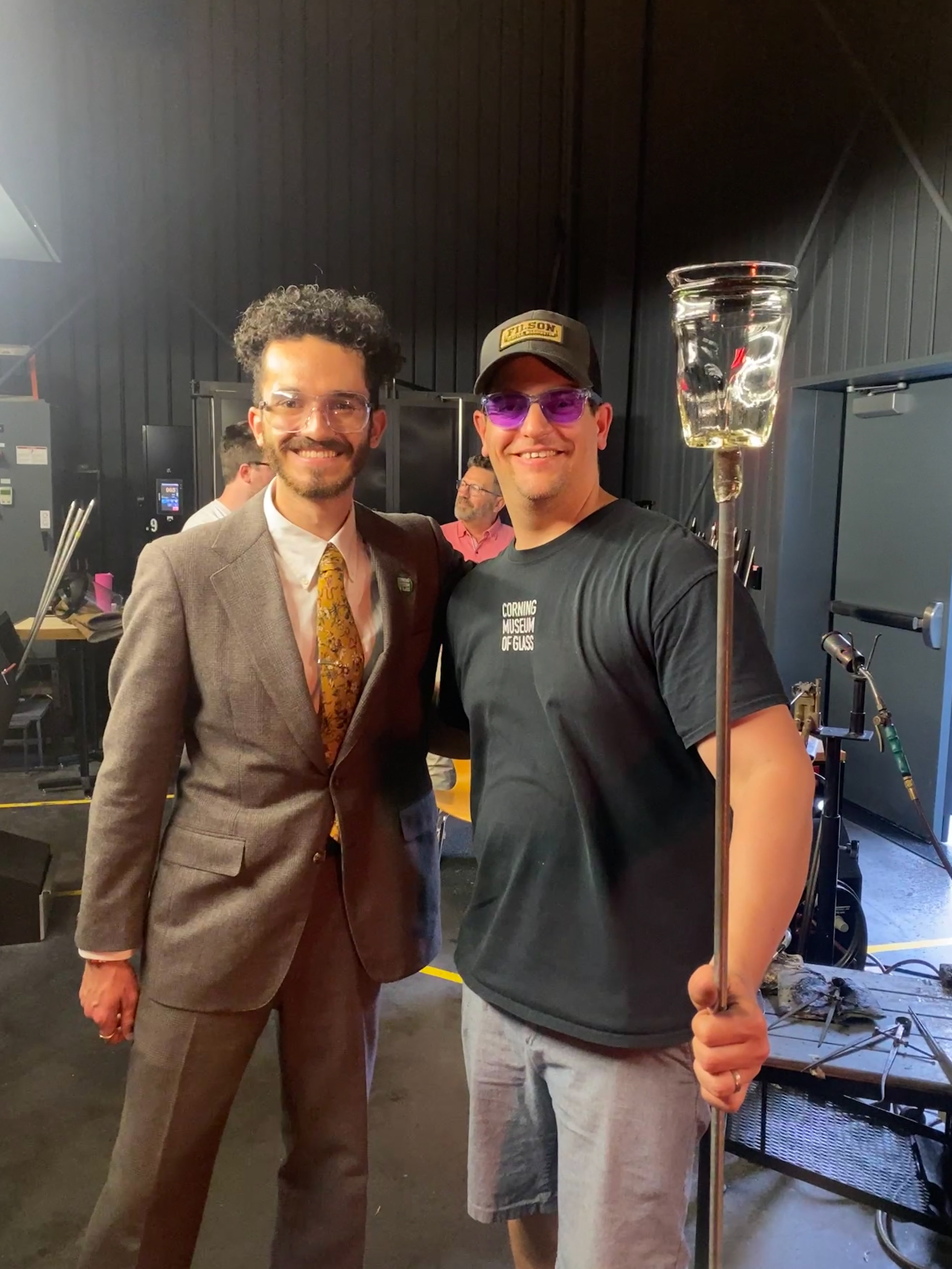 Glass artist Tom Ryder and me, with a wooden mold we made for the glass.