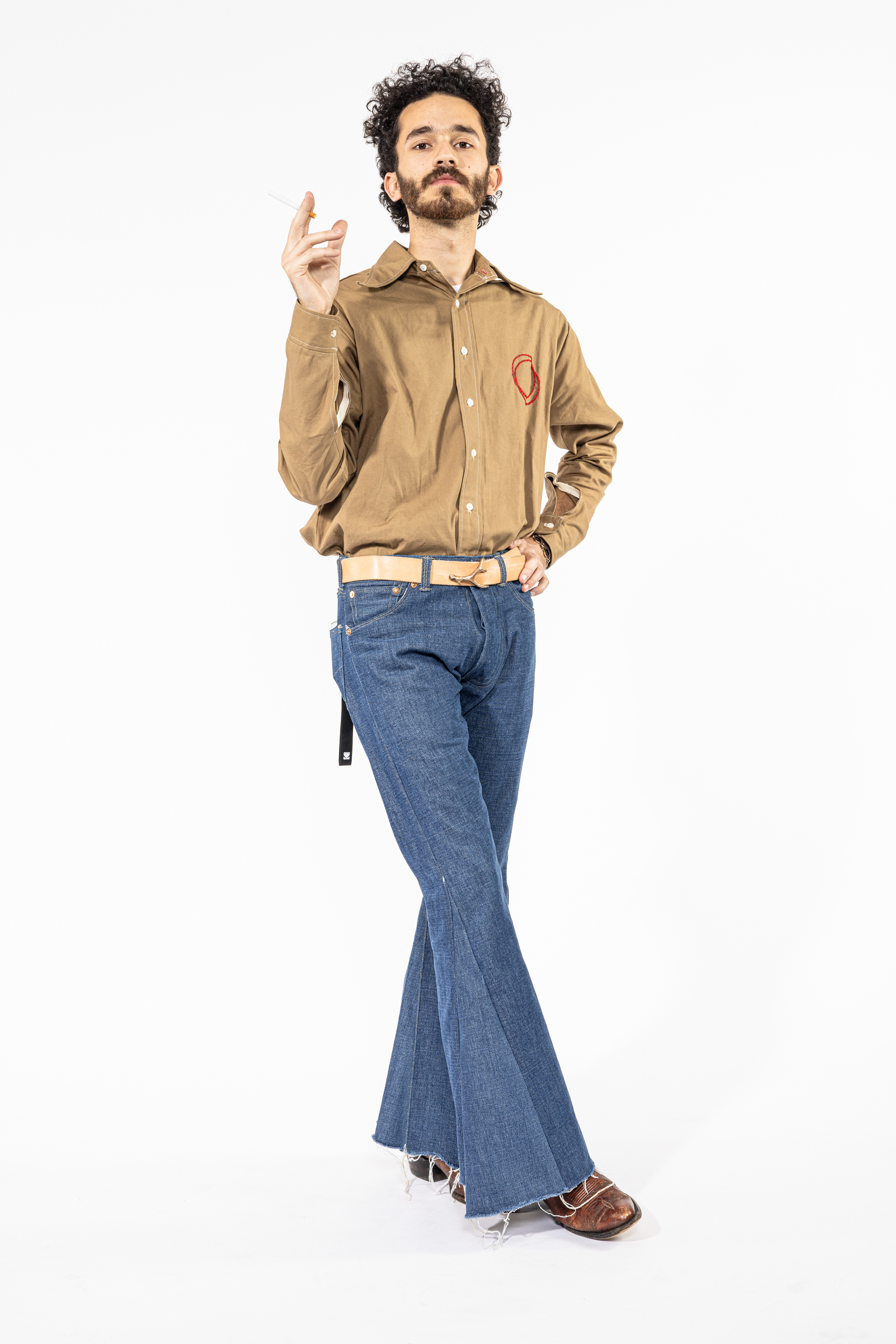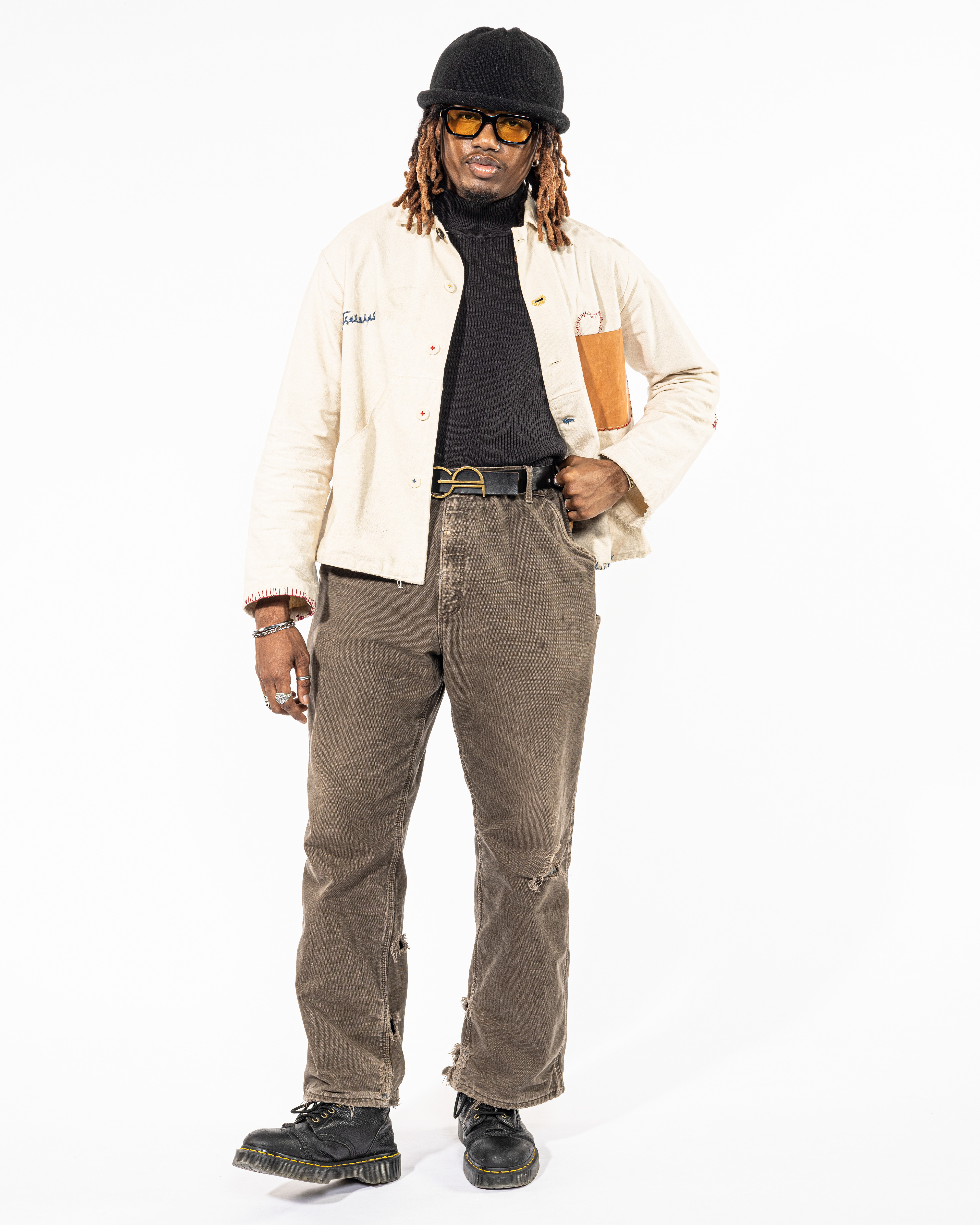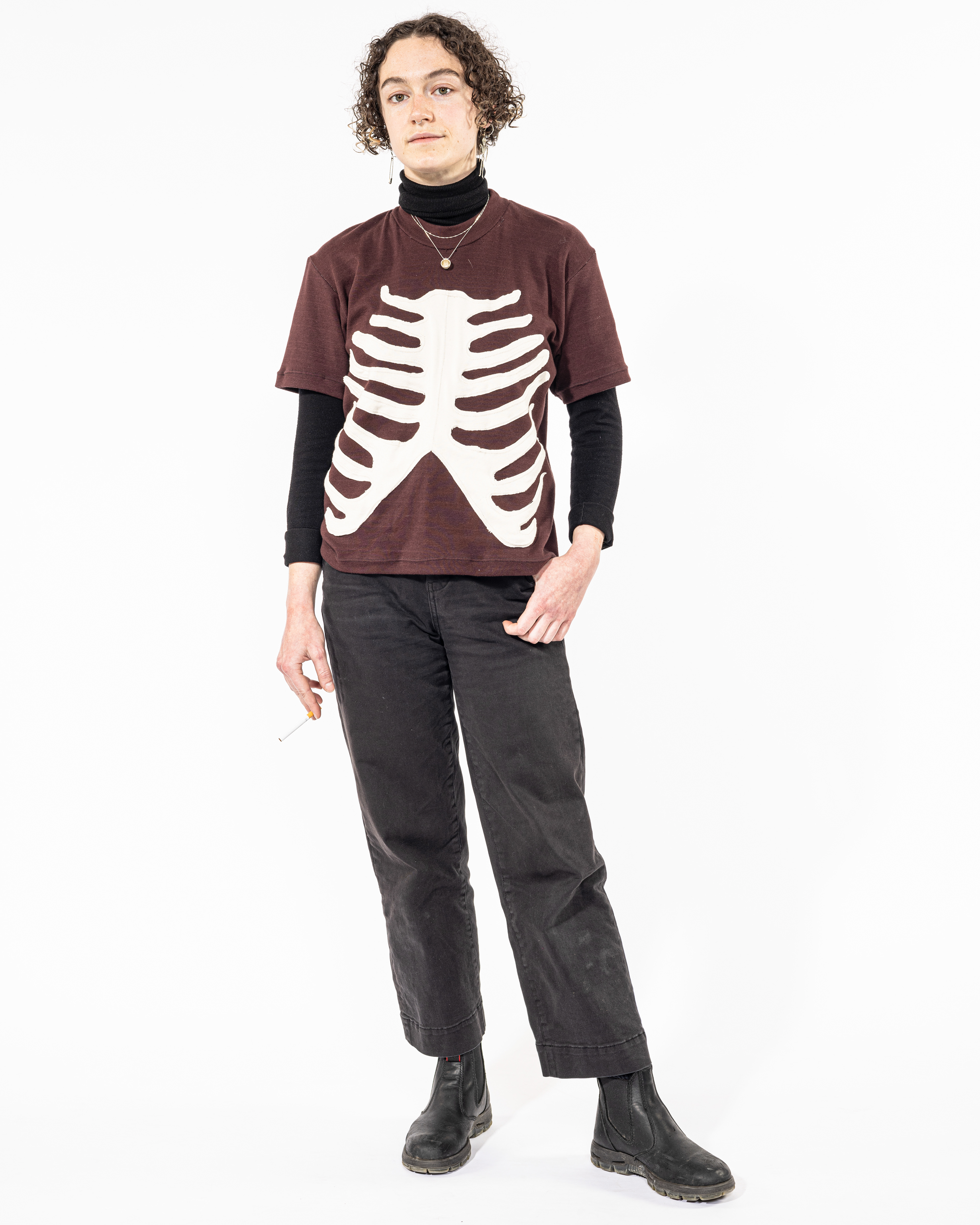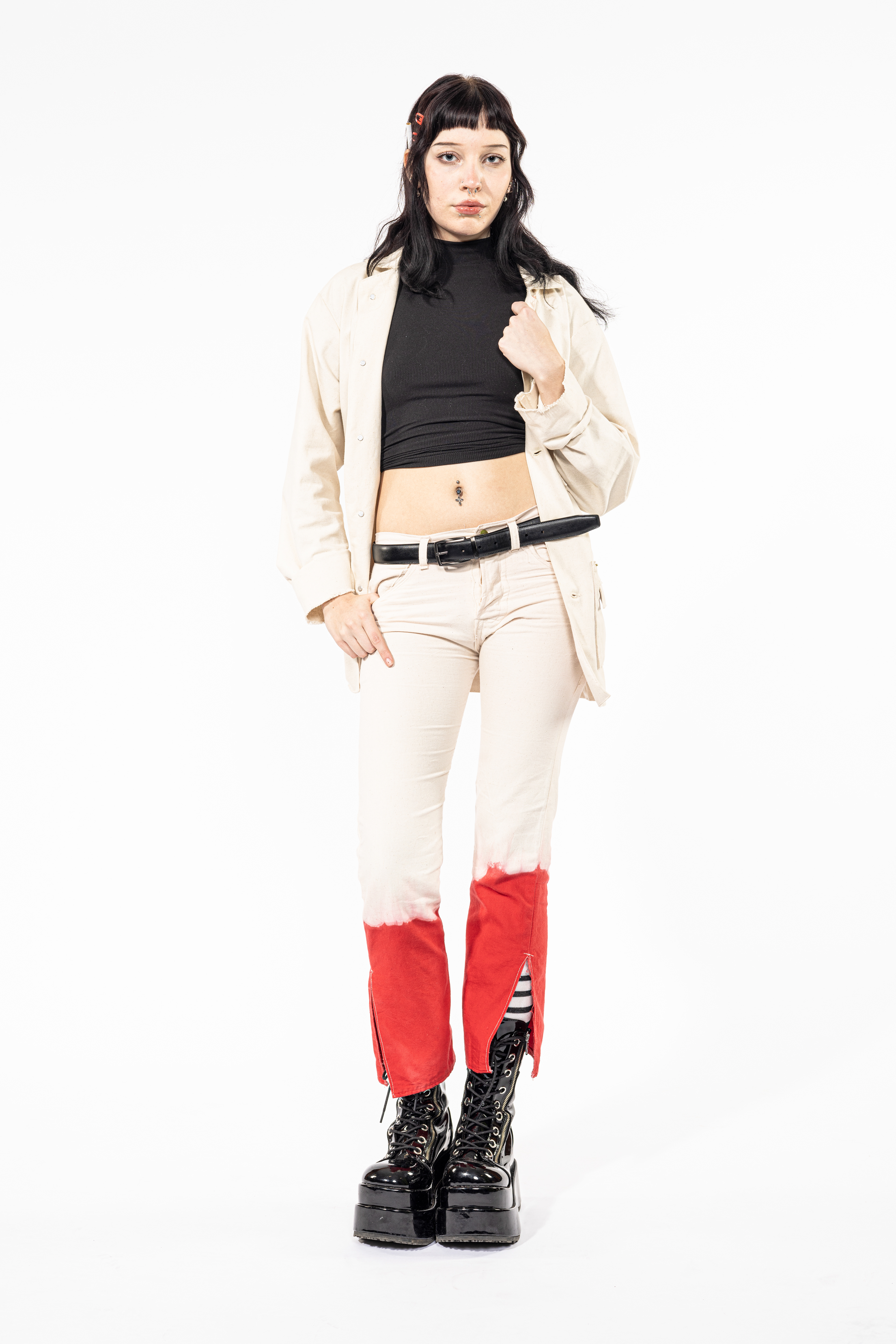 This look was based on a pair of 1857 jeans that were found in a shipwreck, that appear to have distressing directly from the bones of the wearer. Along with “Limber Up,” this look reflects upon the unspoken results of our day to day lives.