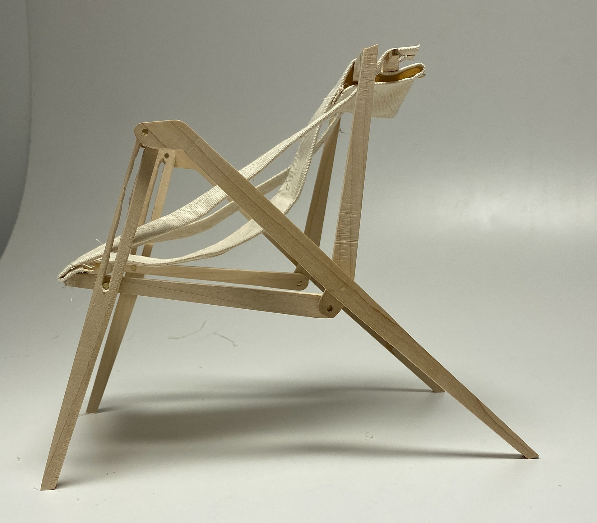 I created a full size mockup of an existing folding chair archetype in order to fully understand its mechanism. I added a strap of webbing to act as an arm rest. Then, I moved into CAD after taking measurements of the mockup.